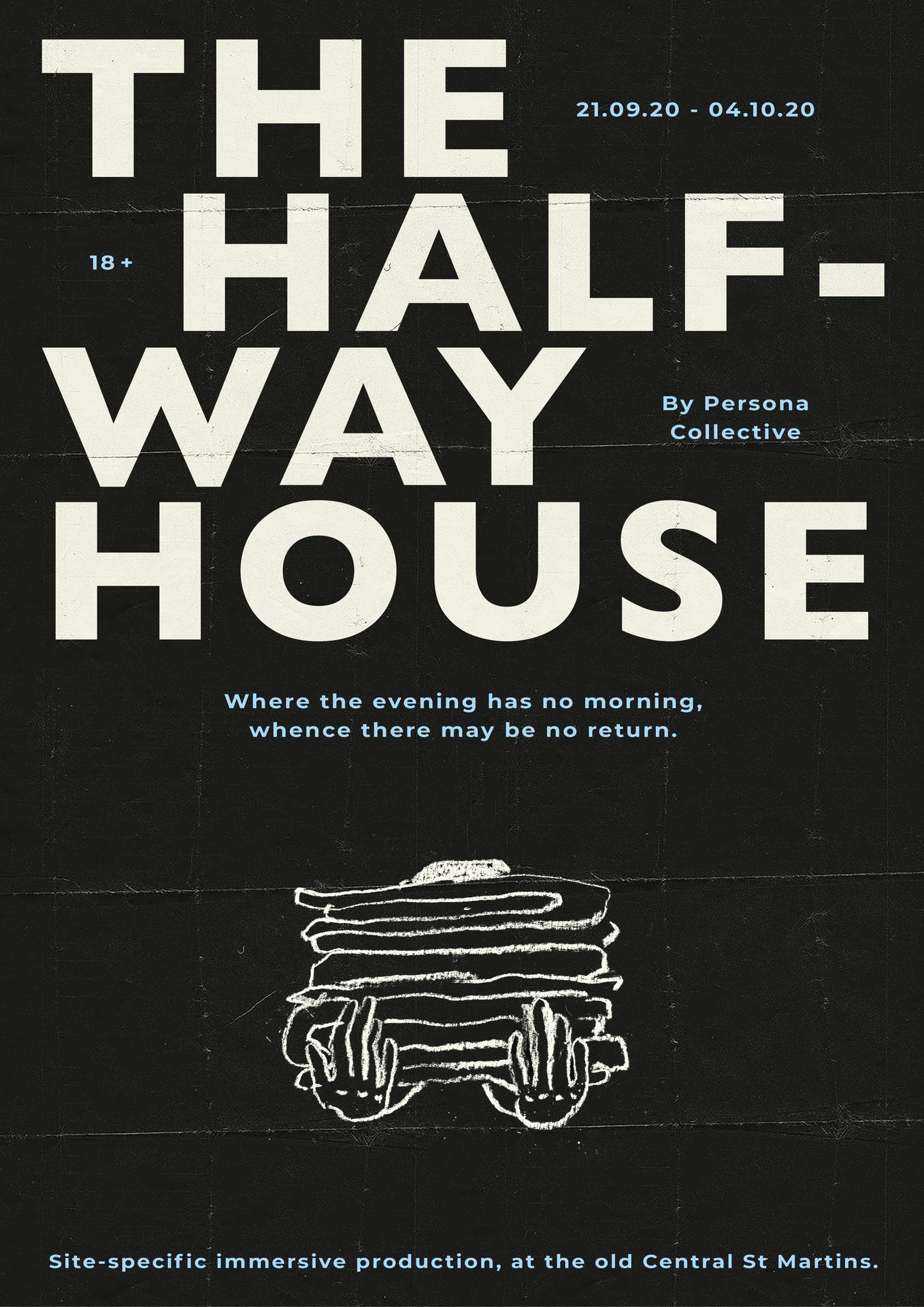 The Halfway House was an immersive theatre production by Persona Collective, commissioned by The Koppel Project, and staged throughout the former Old Central Saint Martins campus in Holborn, London. Taking place from 21 September to 4 October 2020, the live performance occupied over forty rooms across the site, including the Grade II listed Lethaby Building, a 1970s tower, and the 1960s Cochrane Theatre. Once a landmark of art education, the building had been vacant for years, and the project brought it temporarily back to life as a space between abandonment and transformation.